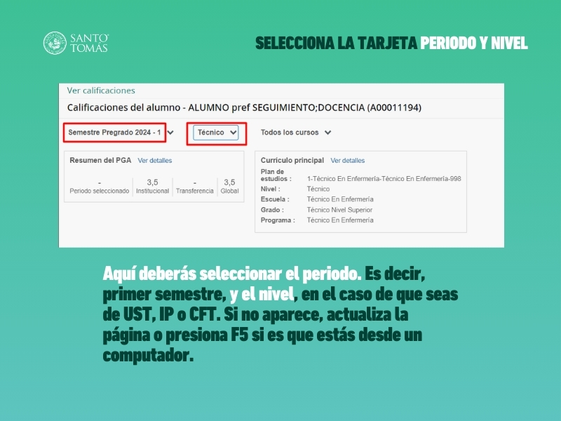 Si al momento de realizar el proceso no se visualiza tu periodo, deberás actualizar la página en tu teléfono móvil o presionar F5 si es que estás haciéndolo desde un computador.